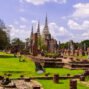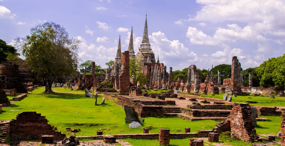 A surreal sight greets every visitor who steps onto the grounds of Wat Mahathat: rows of headless Buddha statues sit in silence, guarding the collapsed central prang (tower). The structure, built in the distinct Khmer style, is broken, yet it still reaches skyward like a defiant fist. These ruins are not merely old temples aging